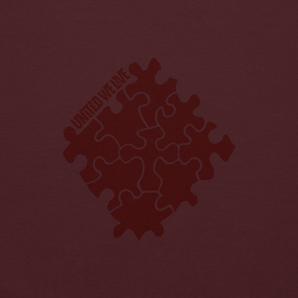 This premium hoodie features a rich maroon tone-on-tone print of the signature United We Live puzzle logo—a powerful symbol of biblical unity: one body, many parts, perfectly joined together in Christ. The design blends seamlessly with the garment color, creating a sleek, modern look that stands out without shouting. Whether you're heading to church, relaxing at home, or out in the community, this tone-on-tone hoodie speaks volumes—quietly and confidently.
